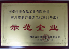 授予南充佳美“四川農(nóng)產(chǎn)品加工示范企業(yè)”